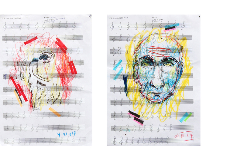 19 x 29cm. colored pencils on music staff. 2014